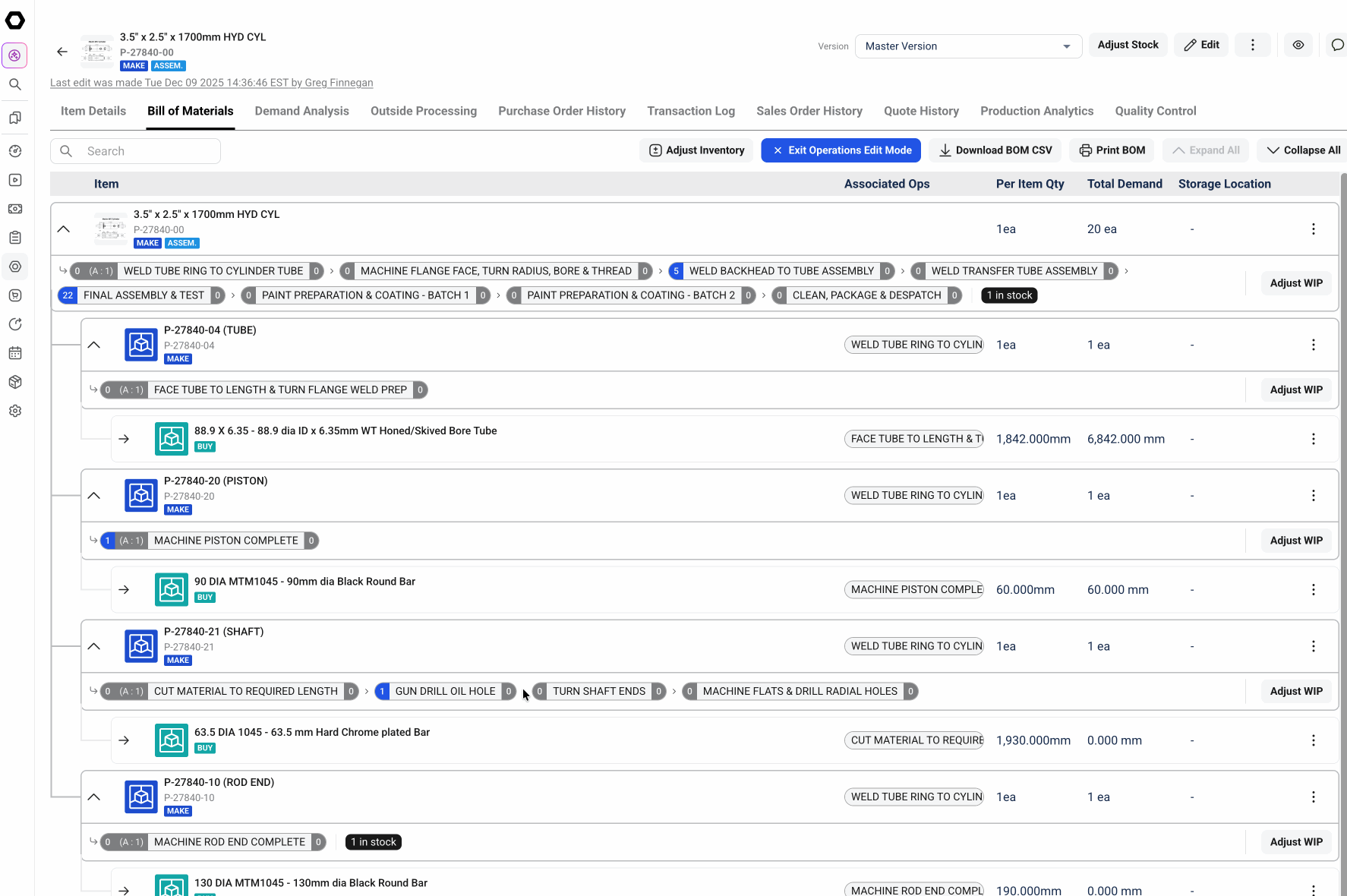 - Line items now feature a Bill of Materials that functions similar to the job Bill of Materials for line item originated demand. Access it by going to the order page and pressing “Bill of Materials”